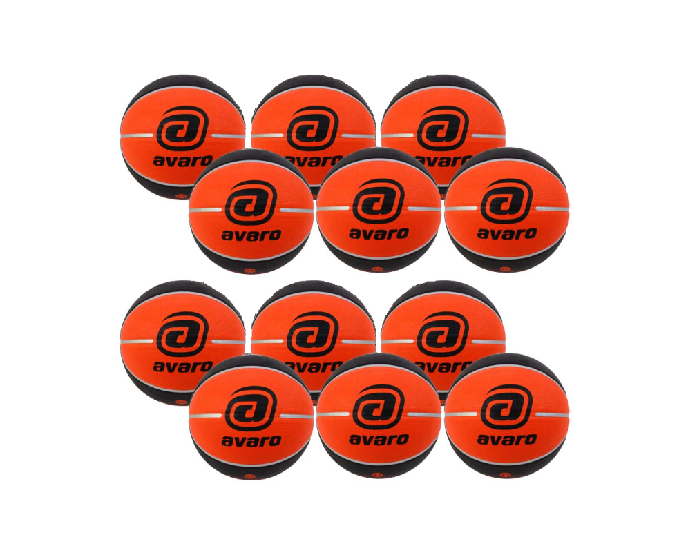 Kit contains 12 x Avaro basketballs size 5, 6 or 7 and a ball bag. These basketballs are designed for everyday use and are high quality. Whether you are in the gym or on the playground, the tough rubber cover, grippy pebbled surface and superior materials will stand the test of time and provide you with exceptional value.