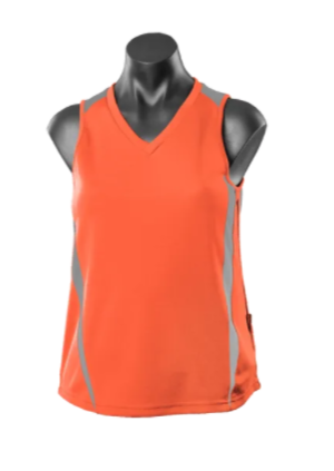 160gm 100% Driwear polyester moisture removal, Driwear mini-waffle knit easy care fabric, V neck, self fabric bind armhole and neck contrast colour highlights. Ladies size 8-20.